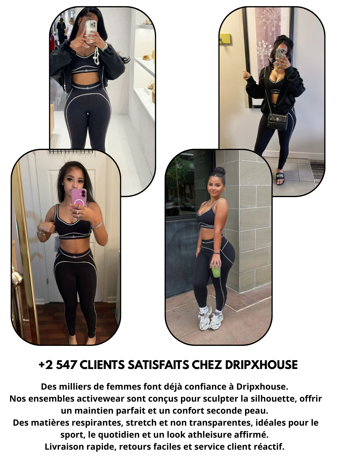 Oui. Cet ensemble activewear est conçu avec un tissu stretch, respirant et confortable, offrant un excellent maintien pour le sport tout en restant parfait pour un usage quotidien et un look athleisure.